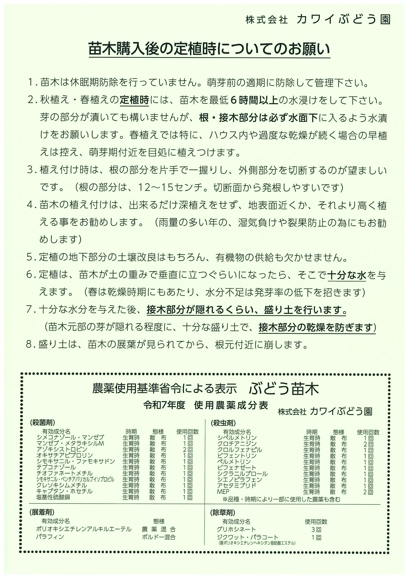 令和7年度 苗木購入後の定植時についてのお願い・使用農薬成分表