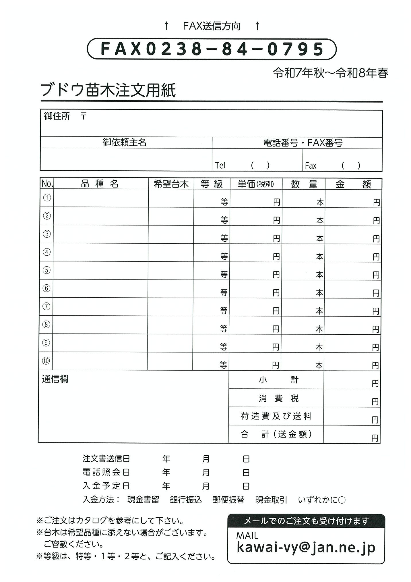 【令和7年秋~令和8年春】 葡萄苗木パンフレット